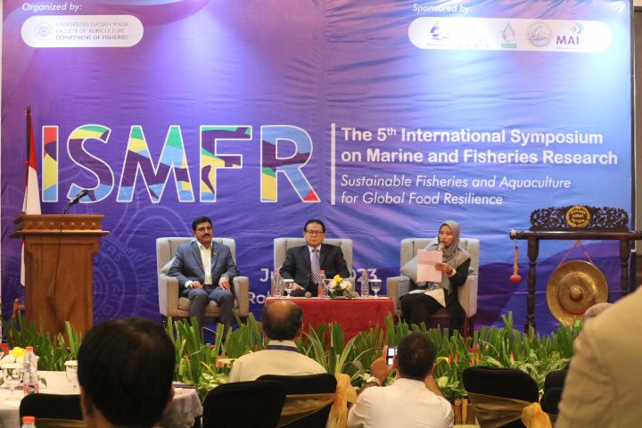 “Oleh karena itu, sudah waktunya untuk menghidupkan gerakan Transformasi Biru di seluruh dunia untuk merevitalisasi semua bisnis perikanan tangkap dan akuakultur yang ada, dan secara bersamaan mengembangkan investasi dan bisnis perikanan tangkap dan akuakultur di area baru untuk menghasilkan makanan; produk farmasi, bioenergi, dan produk air terbarukan lainnya; untuk menciptakan pekerjaan yang baik; dan untuk memberantas kemiskinan dengan cara yang inklusif, ramah lingkungan, dan berkelanjutan,” kata Prof. Rokhmin Dahuri sebagai keynote speaker session 1 The 5th International Symposium on Marine and Fisheris Research (ISMFR) tentang “Perikanan dan Akuakultur Berkelanjutan untuk Ketahanan Pangan Global” yang digelar oleh UGM di Yogyakarta, Senin (24/7/2023).