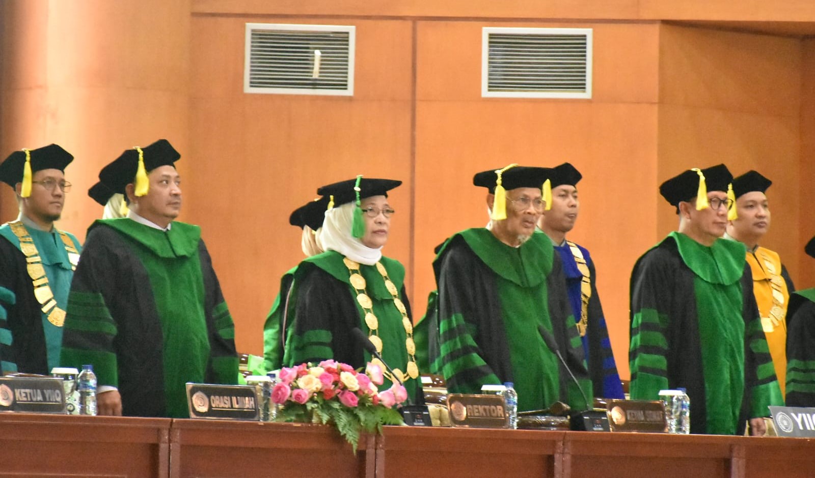 Rektor IIQ periode 2022-2026 ini juga mengucapkan selamat kepada para wisudawan atas keberhasilannya dalam menyelesaikan studi di IIQ Jakarta. Rektor berpesan agar para wisudawan dapat menjaga nama baik almamater IIQ Jakarta.