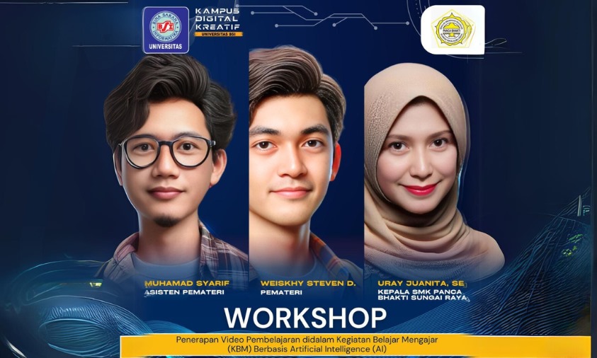 Pontianak — Pesatnya perkembangan teknologi Artificial Intelligence (AI) telah membawa dampak signifikan dalam berbagai bidang, termasuk pendidikan. Mengakui pentingnya hal ini, Universitas BSI bekerja sama dengan SMK Panca Bhakti Sungai Raya akan mengadakan workshop bertajuk “Penerapan Video Pembelajaran dalam Kegiatan Belajar Mengajar (KBM) Berbasis Artificial Intelligence (AI)”. Kegiatan ini akan diselenggarakan pada Rabu, 17 Juli 2024, bertempat di SMK Panca Bhakti Sungai Raya.