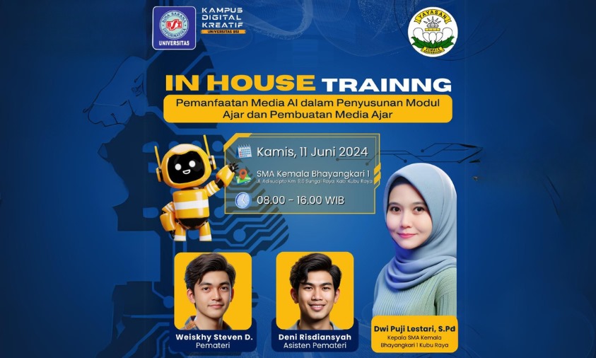 Ir Eri Bayu Pratama selaku kepala kampus Universitas BSI kampus Pontianak mengatakan bahwa tujuan dari In House Training adalah meningkatkan pemahaman dan keterampilan para guru dalam memanfaatkan teknologi AI guna mendukung proses pembelajaran yang lebih efektif dan inovatif.