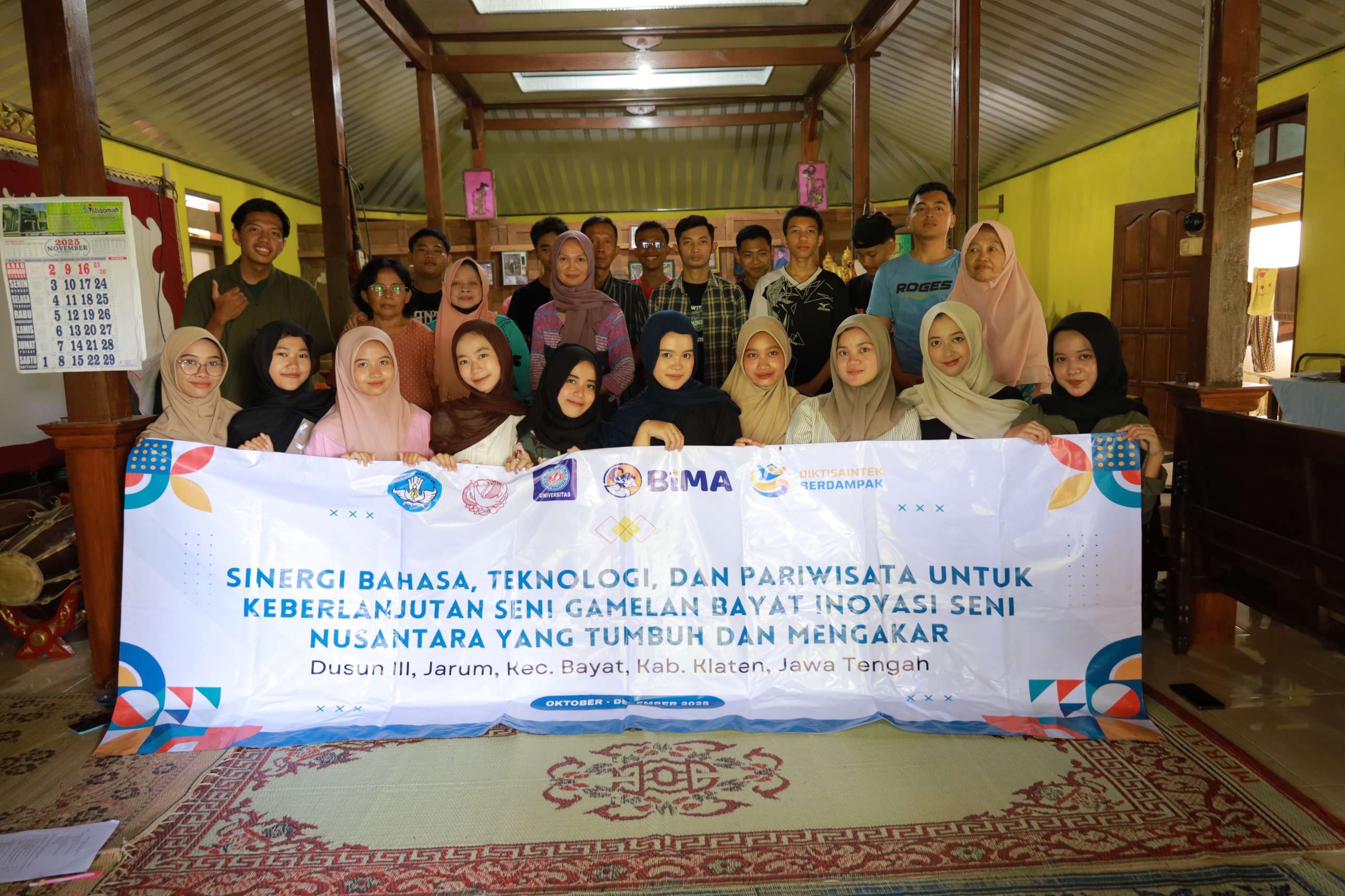 Kegiatan ini merupakan bagian dari program PISN 2025 yang didanai oleh Direktorat Penelitian dan Pengabdian kepada Masyarakat, Direktorat Jenderal Riset dan Pengembangan, Kementerian Pendidikan Tinggi, Sains, dan Teknologi. Seluruh rangkaian pelatihan dirancang untuk mendorong keberlanjutan seni gamelan Bayat melalui sinergi antara bahasa, teknologi, seni pertunjukan, dan pariwisata.